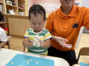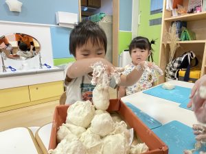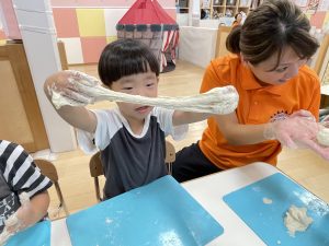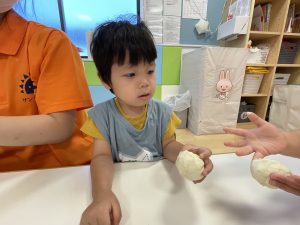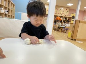 お部屋に戻ってからは小麦粉粘土を作ってお団子作り![]()