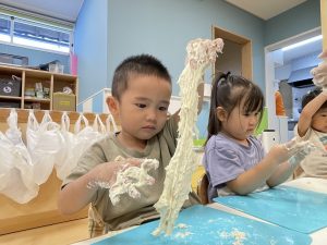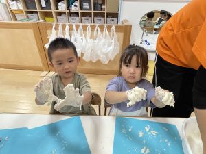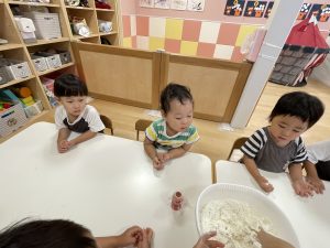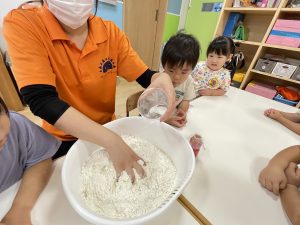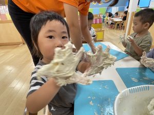 子どもたちにコネコネ混ぜ混ぜしてもらいました![]()