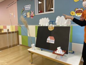 お月さまの絵本を読み始めると「お月さま丸い〜