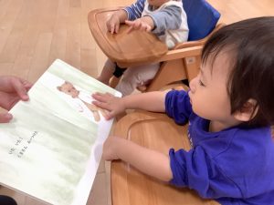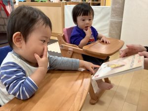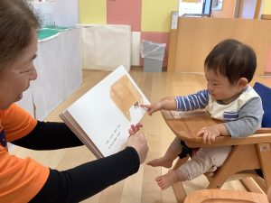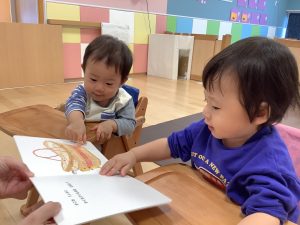 今週は【0歳児🍑もも組】の絵本の様子をご紹介します![]()