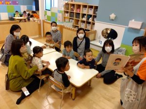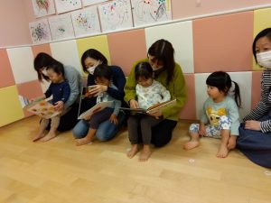 登園してきて揃うまでお母さんのお膝で絵本![]()