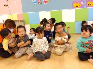 絵本読みの時は、みんな上手にお椅子に座ってお話を聞けているところを見てもらいました![]()