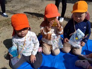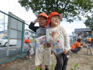 拾ったドングリは作ったお散歩バッグの中へ![]()