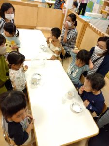 おやつも和気あいあいとした雰囲気の中で食べてくれていました![]()