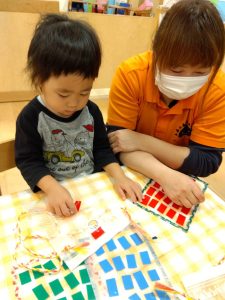 カリキュラム後は、お部屋でお散歩バッグの製作を行いました![]()