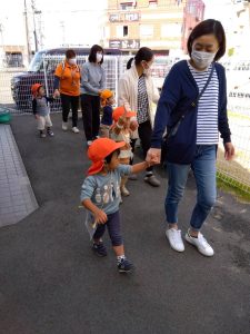 しっかり手を繋いで公園まで安全に歩くことができていました![]()
