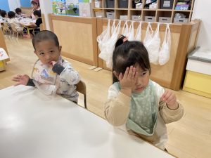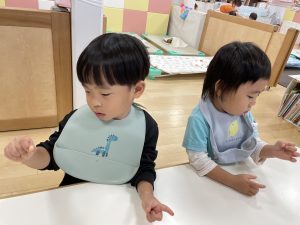 こうやってわっかを作るのかな〜と頑張る可愛い姿