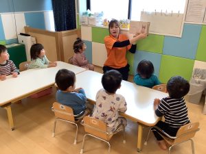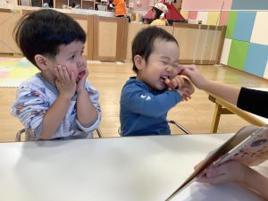 今週は【1歳児🍓いちご組】さんの絵本の様子をご紹介します![]()