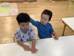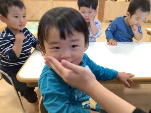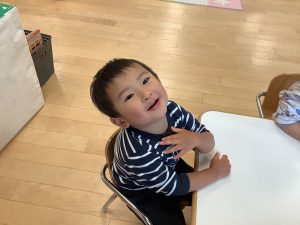 ほっぺを撫でてもらうと、くすぐったかったようで声を出して笑っていましたよ![]()