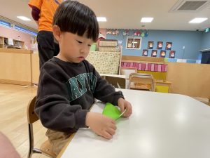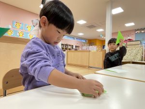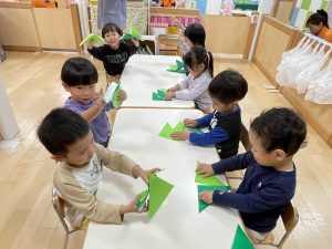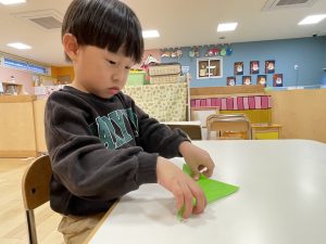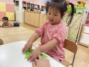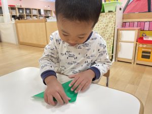 保育者にもお手伝いしてもらいましたが自分でも頑張って折ってくれてました