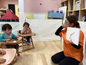 「ヨシヨシしてあげてね」と絵本を持っていくと