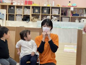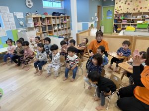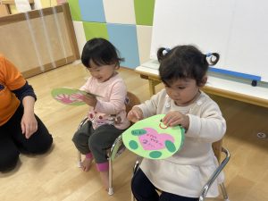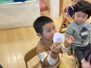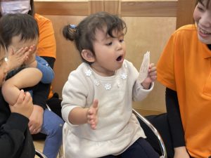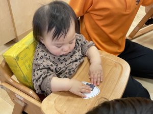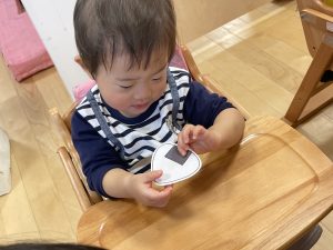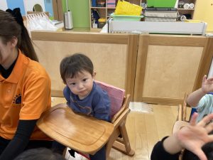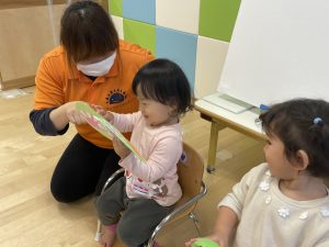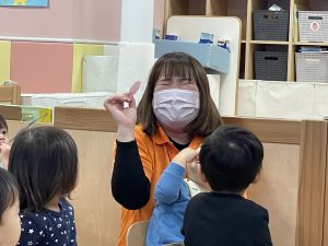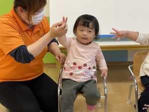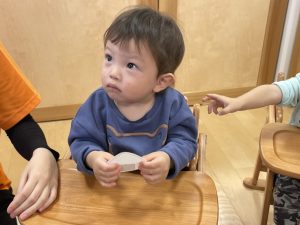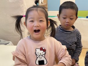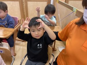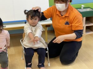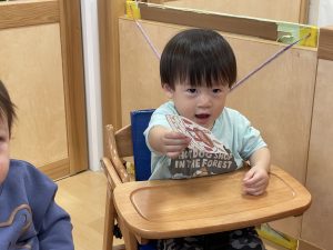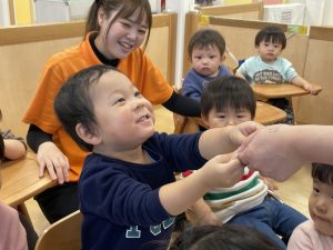 何歳になったかを聞くと、保育者に手伝ってもらいながら指で2を作ってくれました![]()