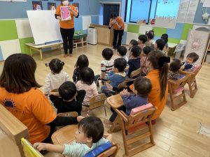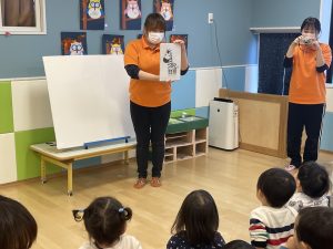 最後は保育者からパネルシアターのプレゼント![]()