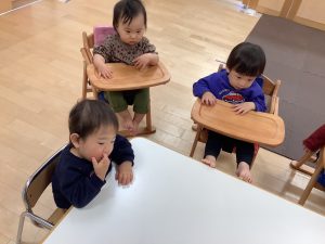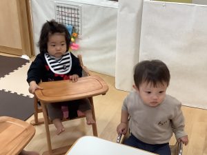 保育者が「はい、どうぞ」と渡すとキョトンッと不思議そう