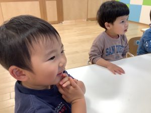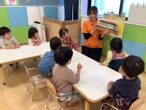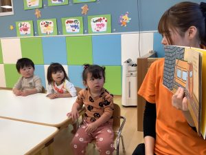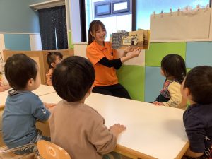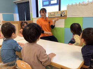 今週は【1歳児🍓いちご組】さんの絵本の様子をご紹介したいと思います