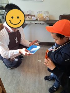手作りのお財布にお金を入れると、子どもたちはワクワクがとまらない様子![]()
