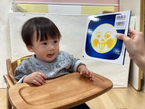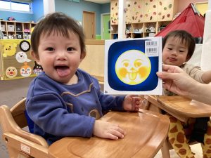 最後におつきさまが舌をペロッと出しているのを見せると真似っこ![]()