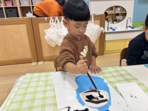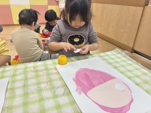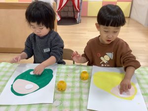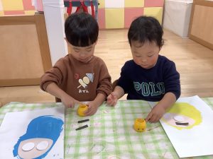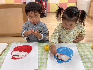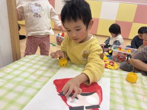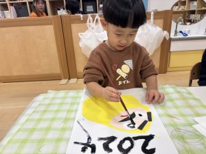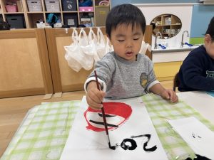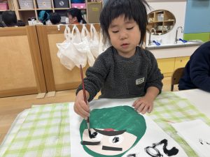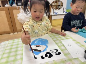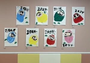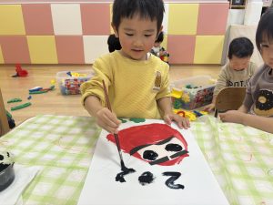 【2歳児🍎りんご組】さんは、ダルマの製作と2024年の書初めをしました