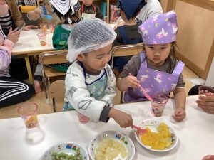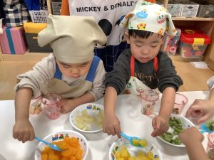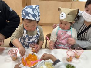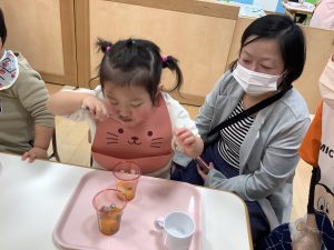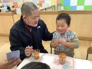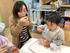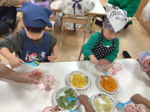 お母さん・お父さんと一緒に作ったフルーツポンチは一段とおいしかったようでペロリッと食べ終えていましたよ