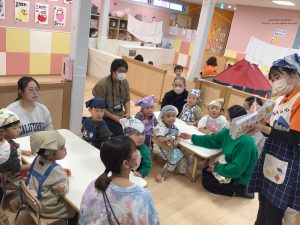 クッキングの導入で「くだものどうぞ」の絵本を読みました