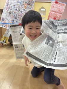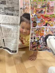 新聞と新聞の隙間からお顔が出てきたよ![]()