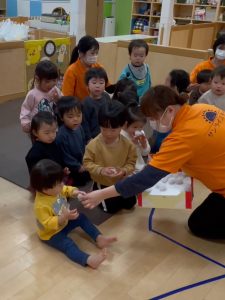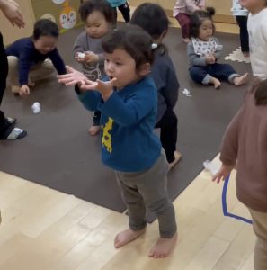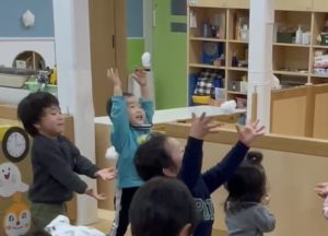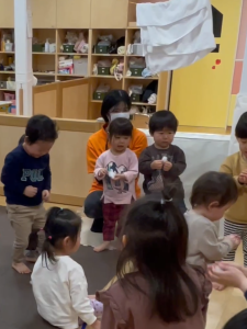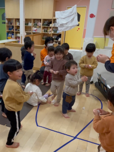 ❄️ゆき❄️の歌に合わせて雪に見立てた綿をふわふわ飛ばします