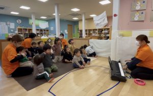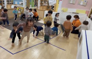 毎週月曜日と金曜日にリトミックのカリキュラムを行なっています