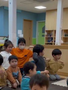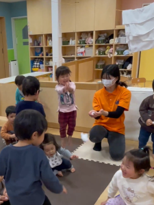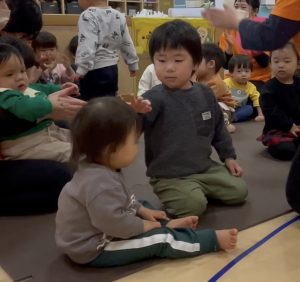 歌に合わせての表現遊びの後は、ハンドサインをしました