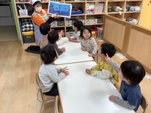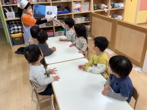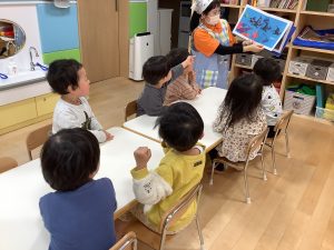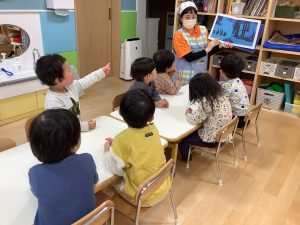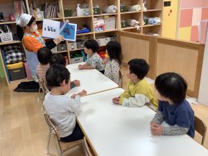 今週は【2歳児🍎りんご組】さんの絵本の様子をご紹介したいと思います![]()