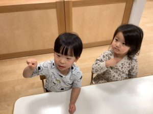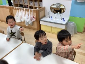 」と言うと子どもたちも走る真似をして一緒に逃げてくれていました![]()