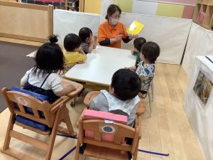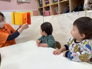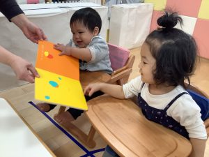 今週は【0歳児🍑もも組】さんの絵本の様子をご紹介します![]()