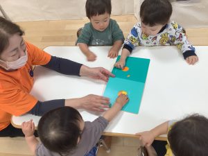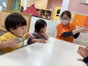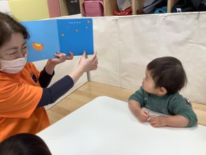 保育者が「しんしんしん」と読むと真似っこして\しんしんしん