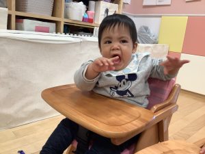 「どっどっ どっどっ」や「とっくん」の言葉の響きがすきなようで保育者が読むたびに可愛い反応をしてくれます![]()