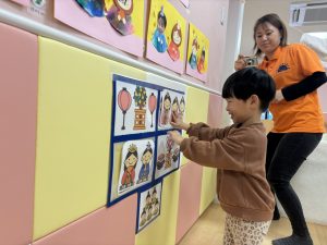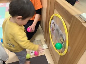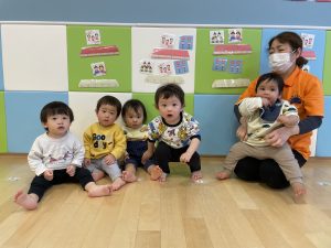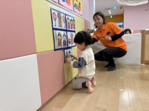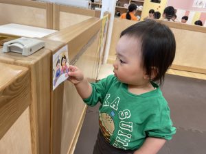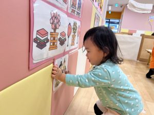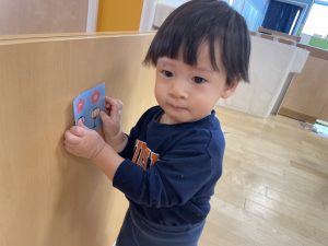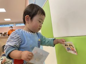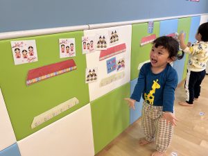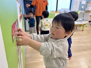 1歳児さんは、お雛様探しゲームと絵合わせゲームをしました