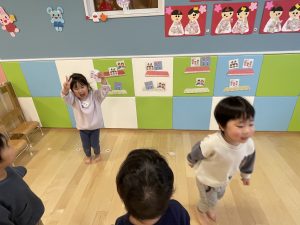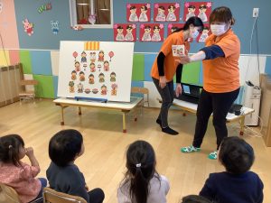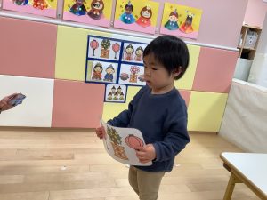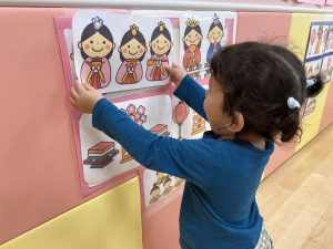 2歳児さんも、お雛様探しゲームと絵合わせゲームをしました
