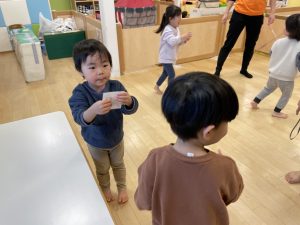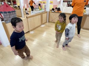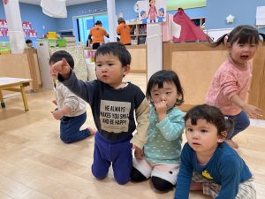 1歳児さんの時よりも少し難しいところに隠したのですがスイスイ見つけていく子どもたち