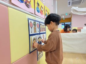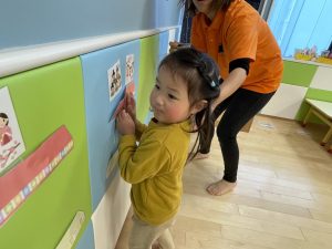 絵合わせゲームでは\あそこに貼るよ〜/とお友だちにアドバイスする姿が