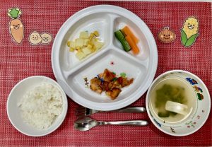 サンライズキッズ保育園 ◎給食の様子 4月には食べられなかった野菜も、今では自分から食べれるようにな...