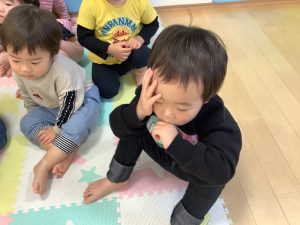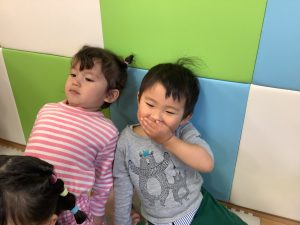 しっかり保育者の真似をしてお口をおさえてくれていました