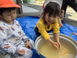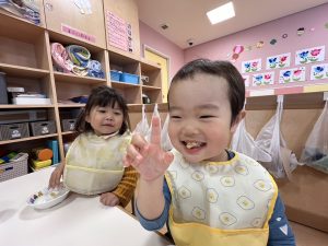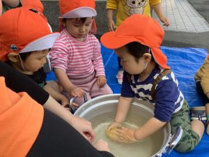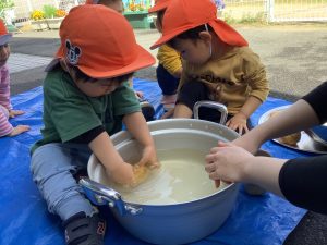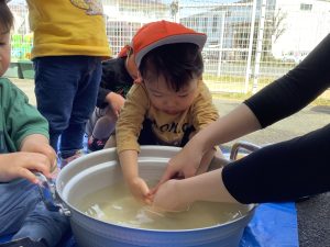 お友だちが洗っている様子をしっかり観察していたこともあり慣れた手つきでゴシゴシ![]()