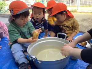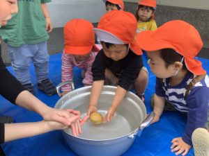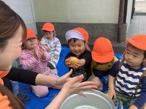 いちご組のお友だちも、じゃがいもに触れてみました![]()