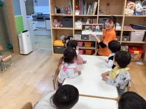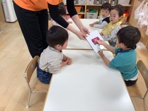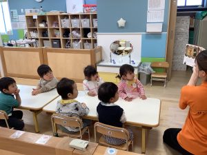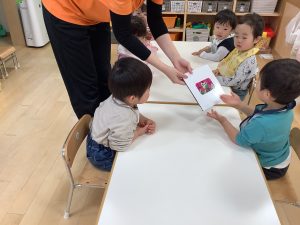 今週は【2歳児🍎りんご組】の絵本の様子をご紹介します
