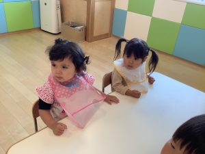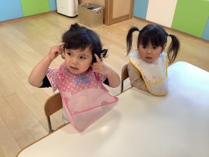 シマウマさんのシマシマを見てエプロンのシマシマと一緒だと気づくお友だちもいましたよ