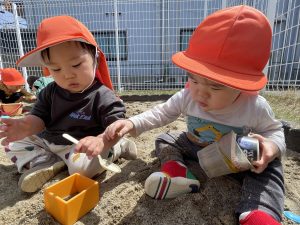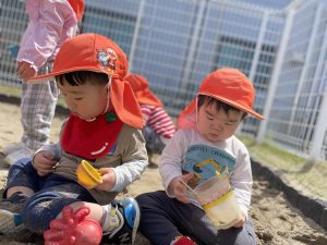 5月から新しく増えたお友だちも砂遊びに興味津々![]()