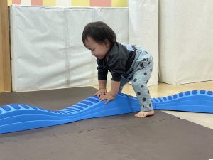 しっかり丁寧に一歩ずつ足を踏みしめて進むお友だちもいました![]()