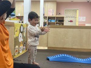 子どもたちが大好きな「ぴょーん」の絵本で身体を動かすよ![]()