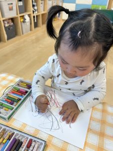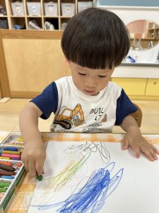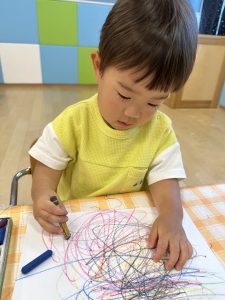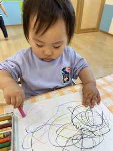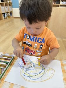 クレヨンの色を言いながら描く姿も見られましたよ![]()