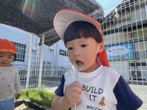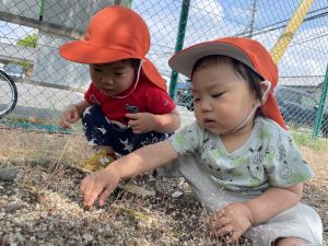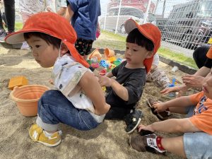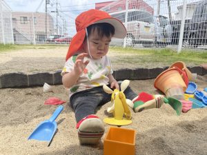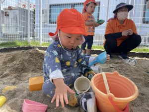 スプーンで上手に砂をすくってカップやバケツに入れることが楽しいようで繰り返し遊んでいました![]()