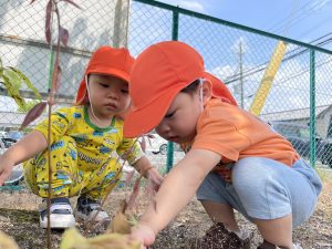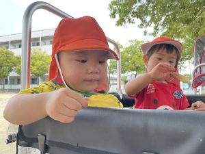 と頑張る姿が増えてきて、何人かのお友だちは保育者がお手伝いしなくても自分で履いてくれています![]()