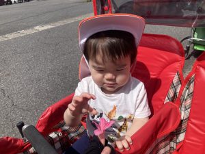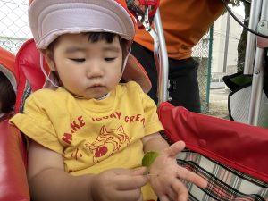 虫にも興味が出てきてお友だちの服にプリントされた虫に気づくとツンツン![]()